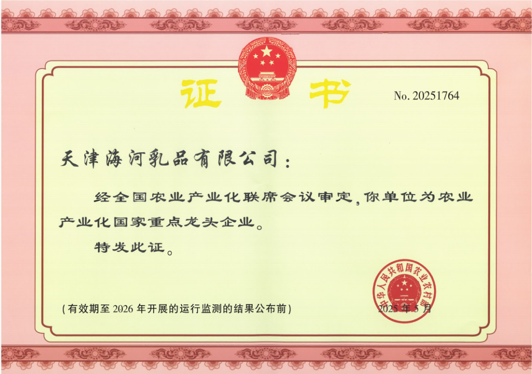 2025年,天津食品集团农业产业化重点龙头企业培育工作取得新成效,新增海河乳品、利达粮油、和田津垦、广源公司4家国家级重点龙头企业,新增天食望月、供应链公司2家市级重点龙头企业,嘉立荷牧业公司等10家企业顺利通过年度监测。