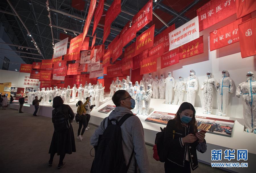 10月15日,人们在抗击新冠肺炎疫情专题展览上参观。