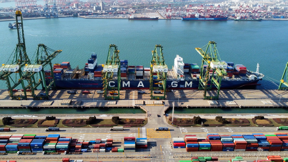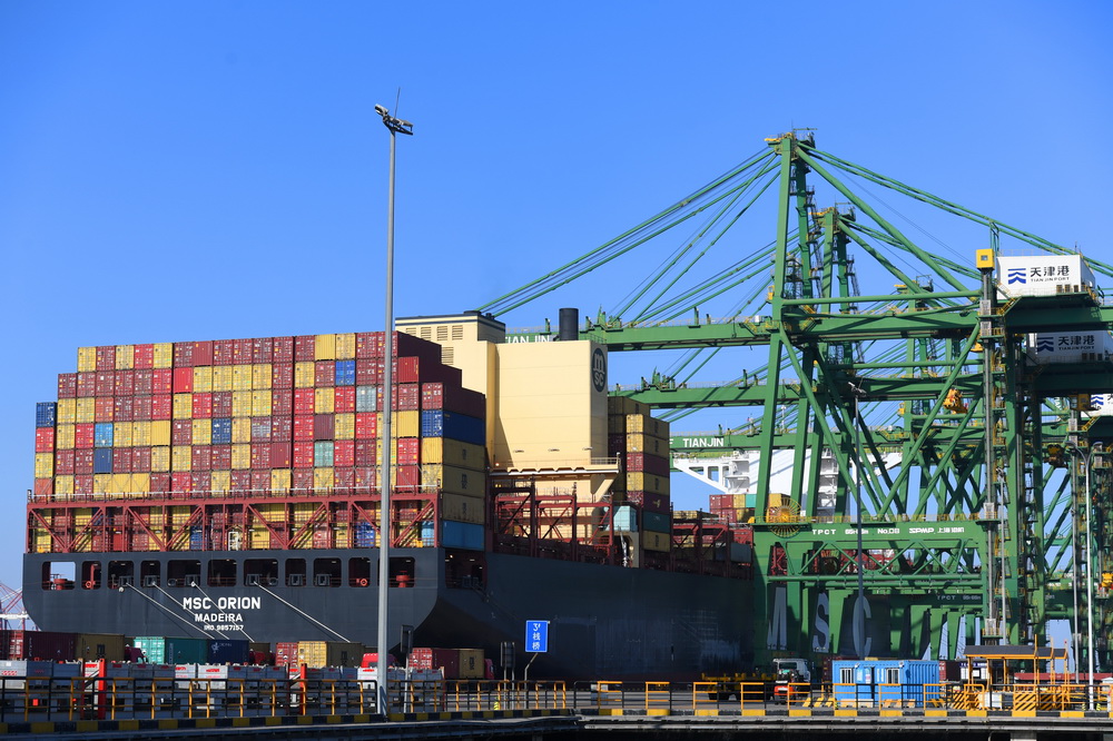 2020年,天津港年度集装箱吞吐量创历史新高,全年完成1835万标准箱,同比增长6.1%。新华社记者 赵子硕 摄