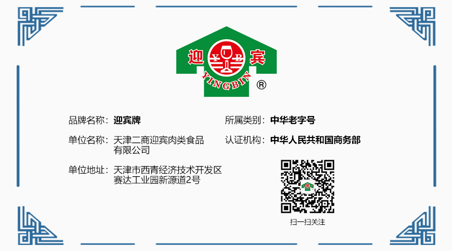作为天津肉类食品加工的龙头企业,我公司利用品牌和技术优势,在传承了天津近代肉制品加工制作传统技艺的同时,遵循传统工艺与现代技术相结合,继承传统与开拓创新相结合的宗旨,不断地改进提升传统产品,研制开发新产品,并将产品定位在面向大众的中高档位置。享誉津门深受消费者喜爱的“迎宾牌”老火腿肠,见证了我公司“迎宾牌”肉制品继承与创新的全部成长历程。承载着几代人心血与汗水的“迎宾牌”肉制品,以其味道鲜美、质量上乘、风味独特、品种多样,形成了自己特有的风格和品位。以荣获国家产品质量银质奖的“迎宾牌”火腿肠和玫瑰肠为代表,我公司生产的肉制品相继被评为天津市优质产品、商业部优质产品和天津市名牌产品,“迎宾牌”商标亦被认定为天津市著名商标。