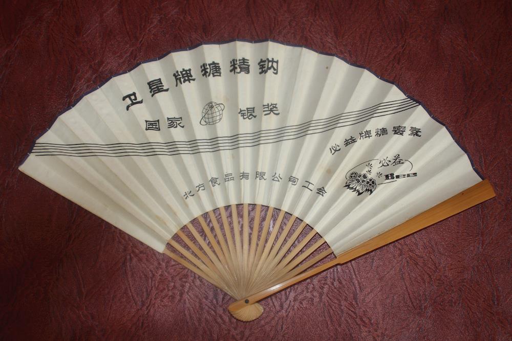 因为,在别人看来很不起眼的这把折扇上,印有“卫星牌”糖精钠,国家银奖的字样,所以,他平时舍不得使用,他就想把这把印有“卫星牌”糖精钠——国家银奖字样的折扇收藏起来,当他以后退休,他要告诉他的子孙后代,他曾经在天津北方食品有限公司工作过;他曾经为企业的发展做出过自己的努力,他曾经为“卫星牌”糖精钠产品贡献过自己的青春年华,他要将这把折扇伴随他的一生,直到永远。